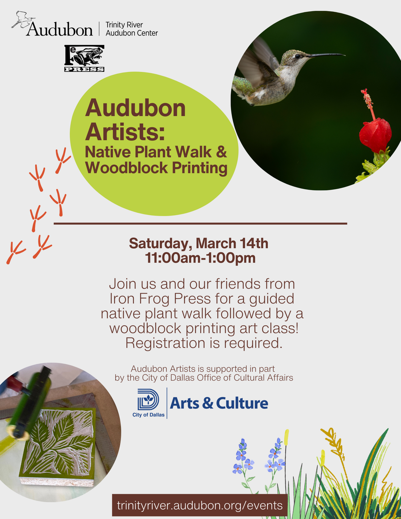 Join us and our friends from Iron Frog Press for a guided native plant walk followed by a woodblock printing art class! Registration is required.